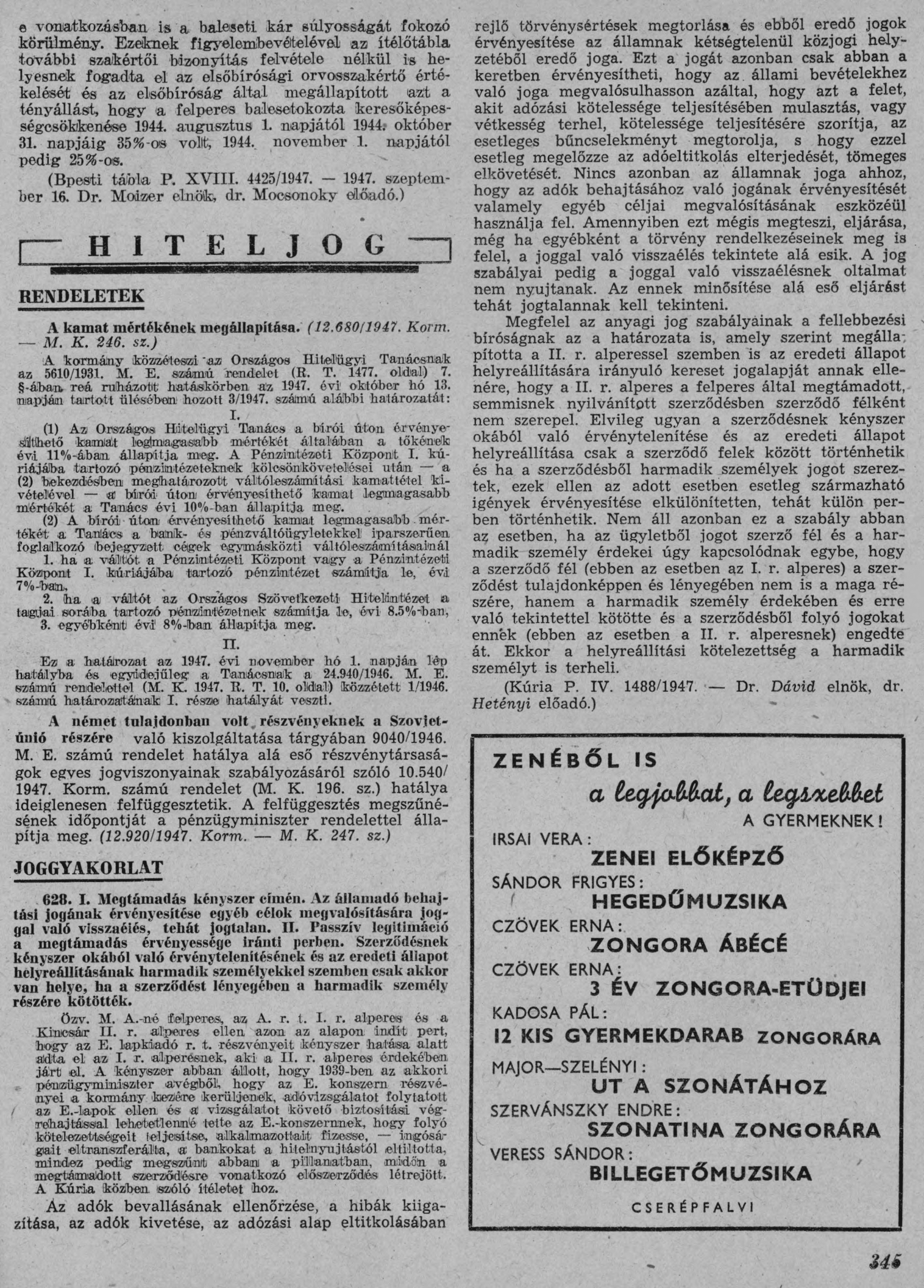 [Forrás: Magyar Jog II. évf., 1947., 345. o., és Magyar jog magánjogi, hiteljogi és eljárásjogi döntvénytára. Felszabadulástól - 1947. XII. 31-ig (Budapest, 1948; szerk.: Őze Imre) 21. és 115. o.]